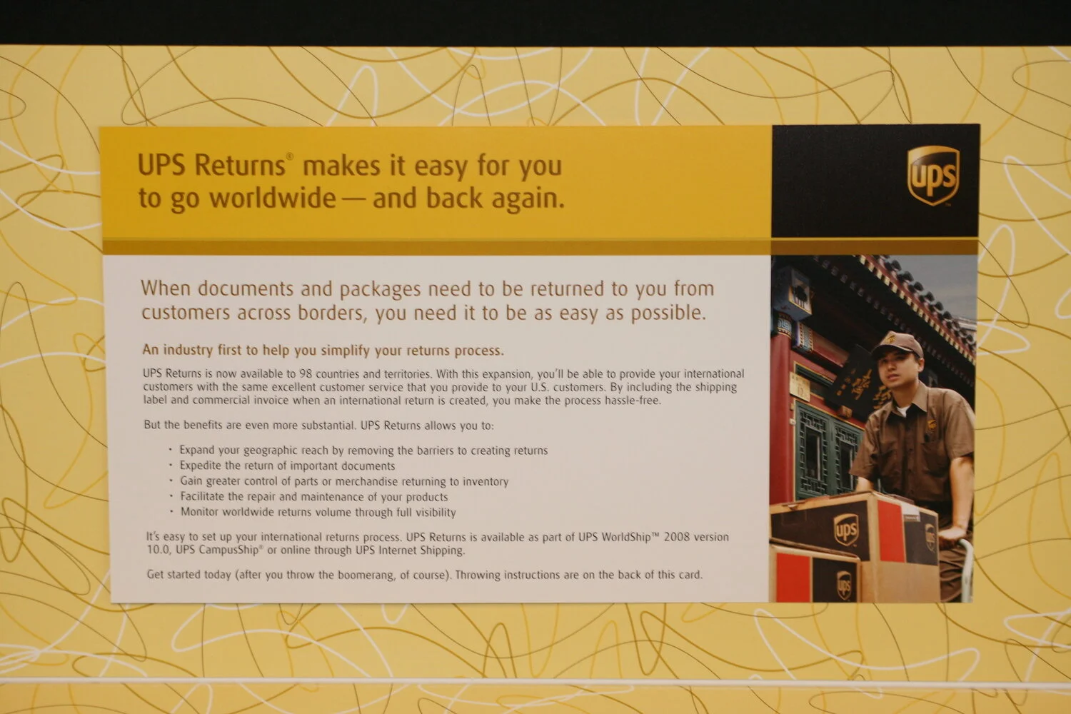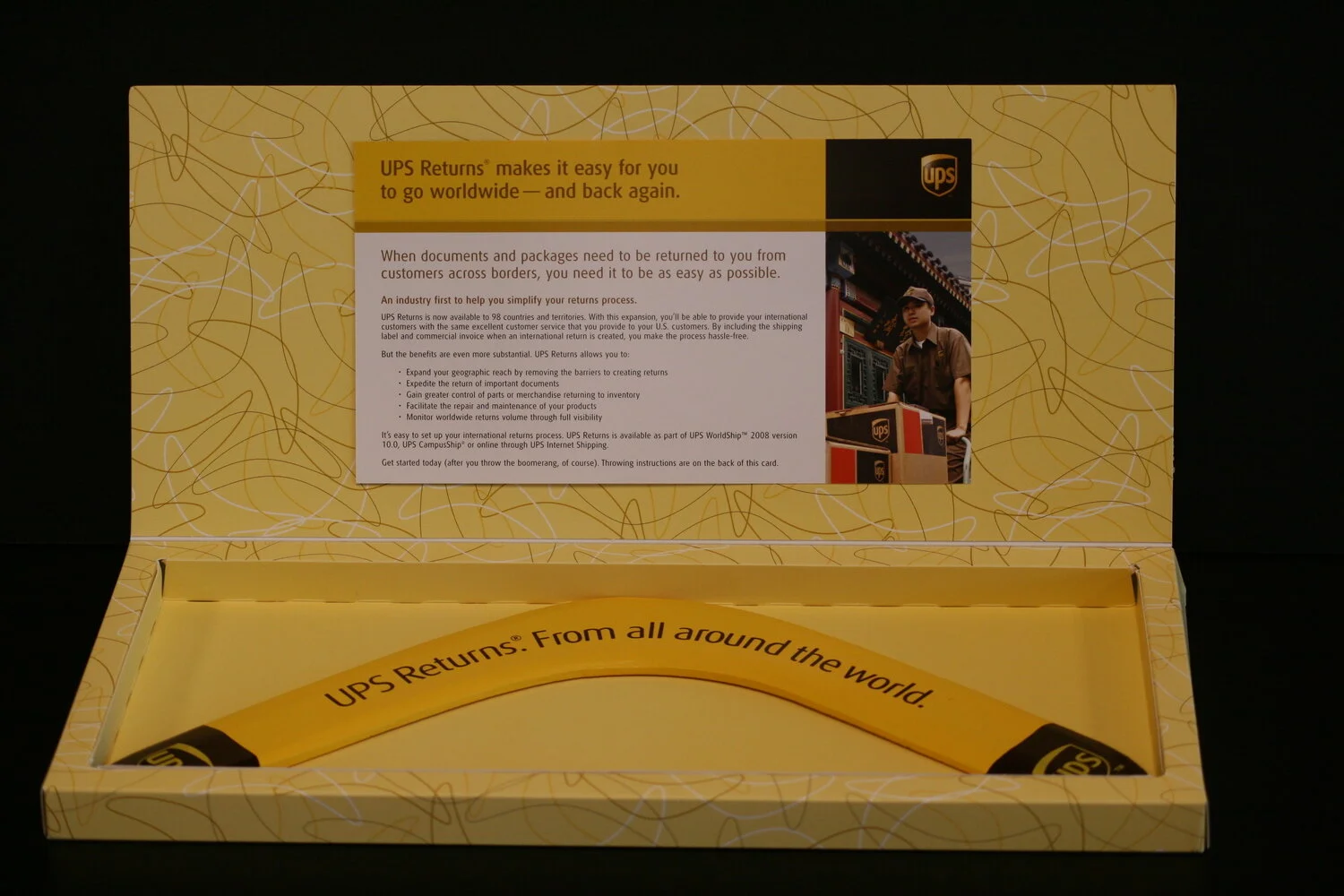 This dimensional direct mail piece promoted a new International Returns service that UPS launched to make it easy for consumers to return merchandise from anywhere in the world.