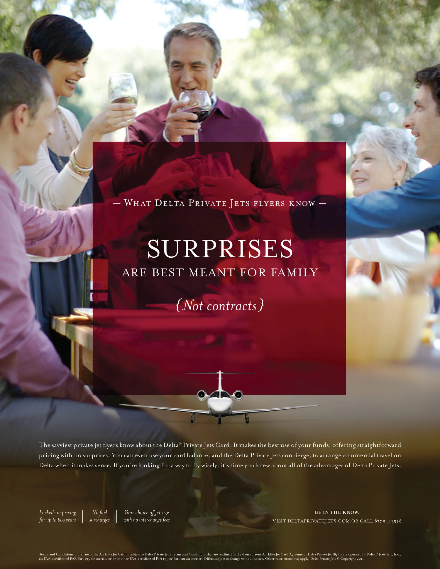 "What Delta Private Jets flyers know" was the basis for truths that this audience understood, and our headlines meshed with the unique benefits of a Delta Private Jets Card.