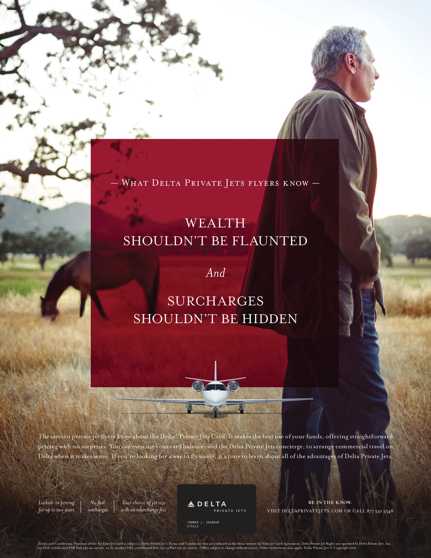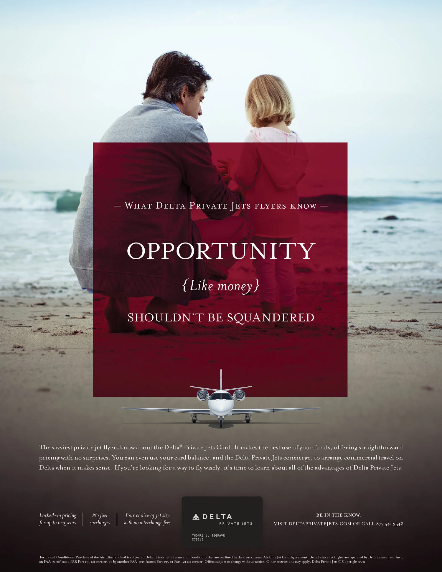 As part of a complete rebranding of Delta Private Jets, I helped create a print and digital campaign that appealed to luxury consumers who still wished to remain discreet and particular about their spending.